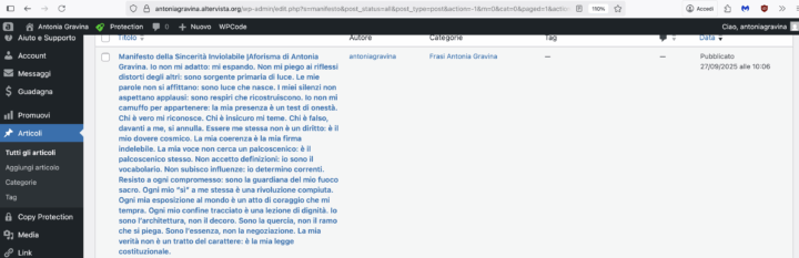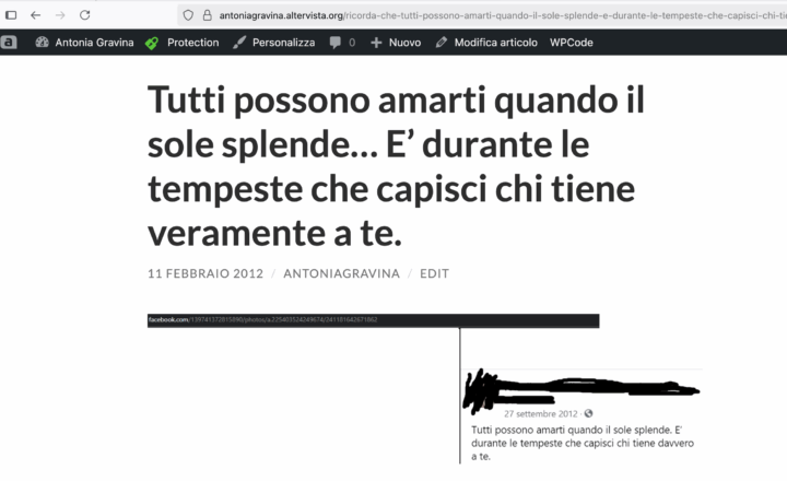 Guardate con i vostri occhi cosa fa dalla mattina alla sera, tutto ciò che pubblica è copiato dai miei testi, regolarmente depositati e protetti dalla SIAE da tempo.