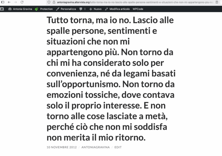 I testi che pubblica sono copiati dai miei, segnalate. Le parole cardine che mi rappresentano da anni: brillare, sostanza, apparenza, chi resta, verità, coerenza, ecc. è tutto copiato dai miei testi.